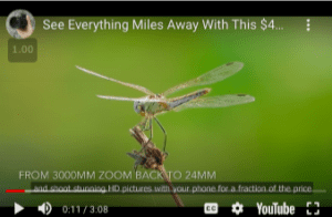 This ad for a SuperZoom scope (w/ $700k+ adspend) shows how you can zoom in on a grasshopper from 100M+ away, giving you an “ownership experience” of what it will be like to use the scope yourself.