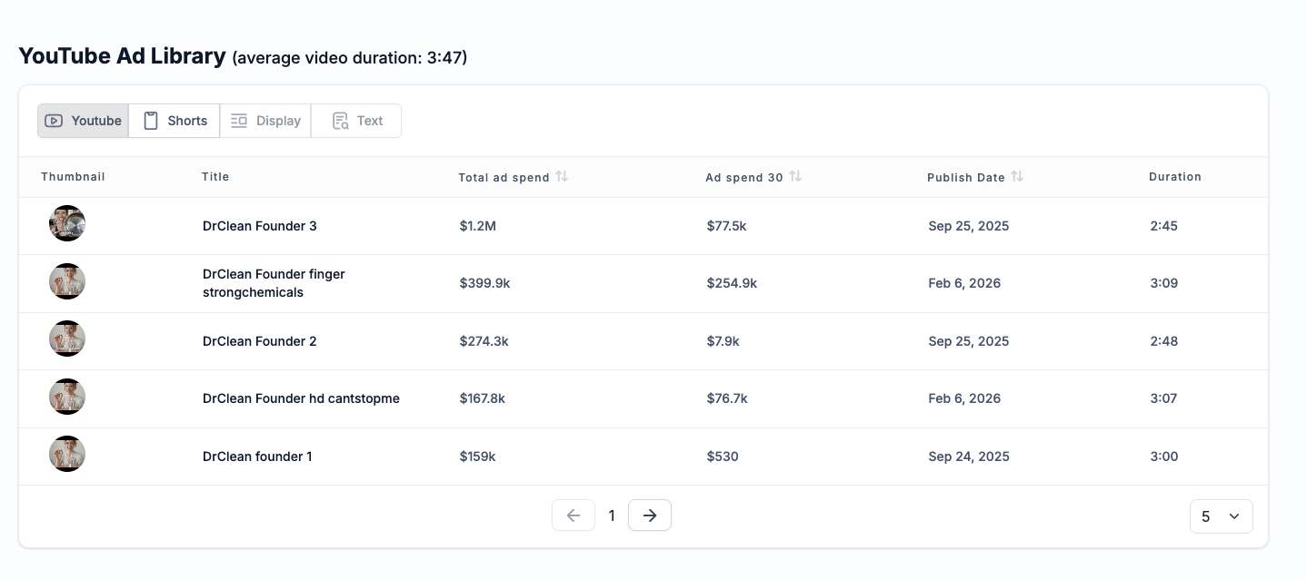 Multi-purpose cleaning spray ad with nearly $400k in ad spend