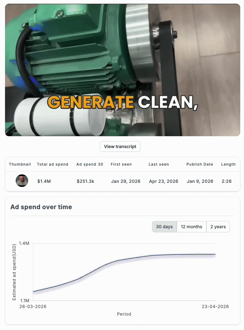Off-grid energy device ad with over $1.4M in ad spend…