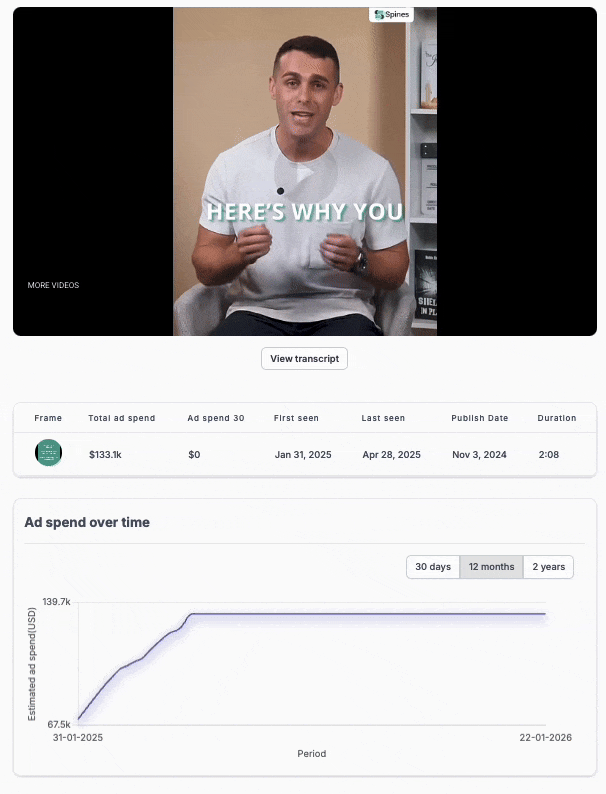 This advertiser has many other cool ads you can take inspo from, and you can find them all inside VidTao YouTube ad library