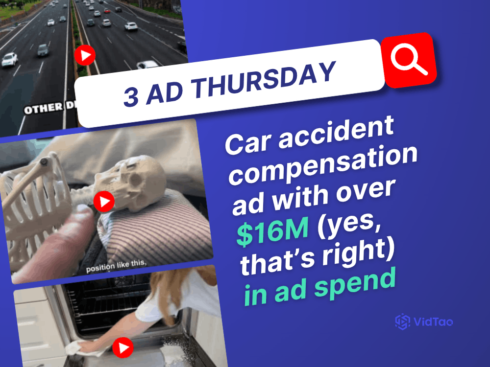 Our first ad pick for this week is this car accident compensation ad we found inside VidTao, with ad spend of over $16!