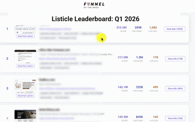 Our friends at Funnel of the Week just released a new interactive dashboard showing the top Listicle Landing Pages of 2026 so far…