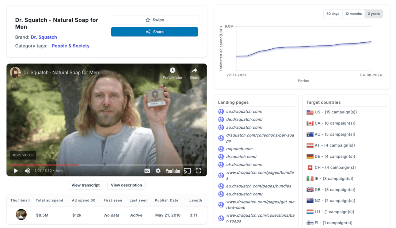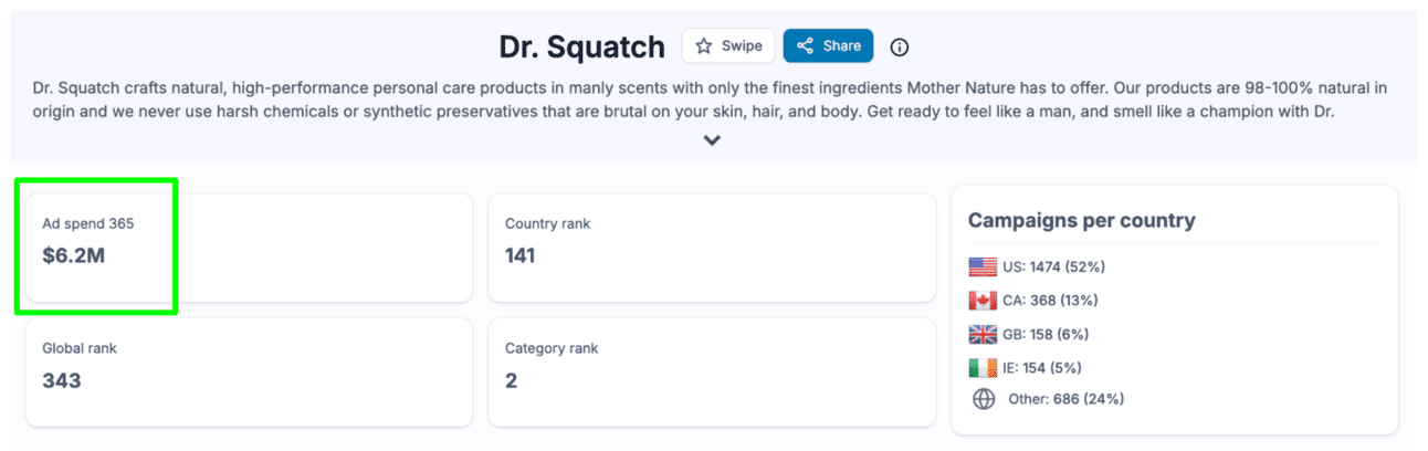 And of course this doesn’t stop Dr Squatch from still spending a significant amount on Direct Response ads: