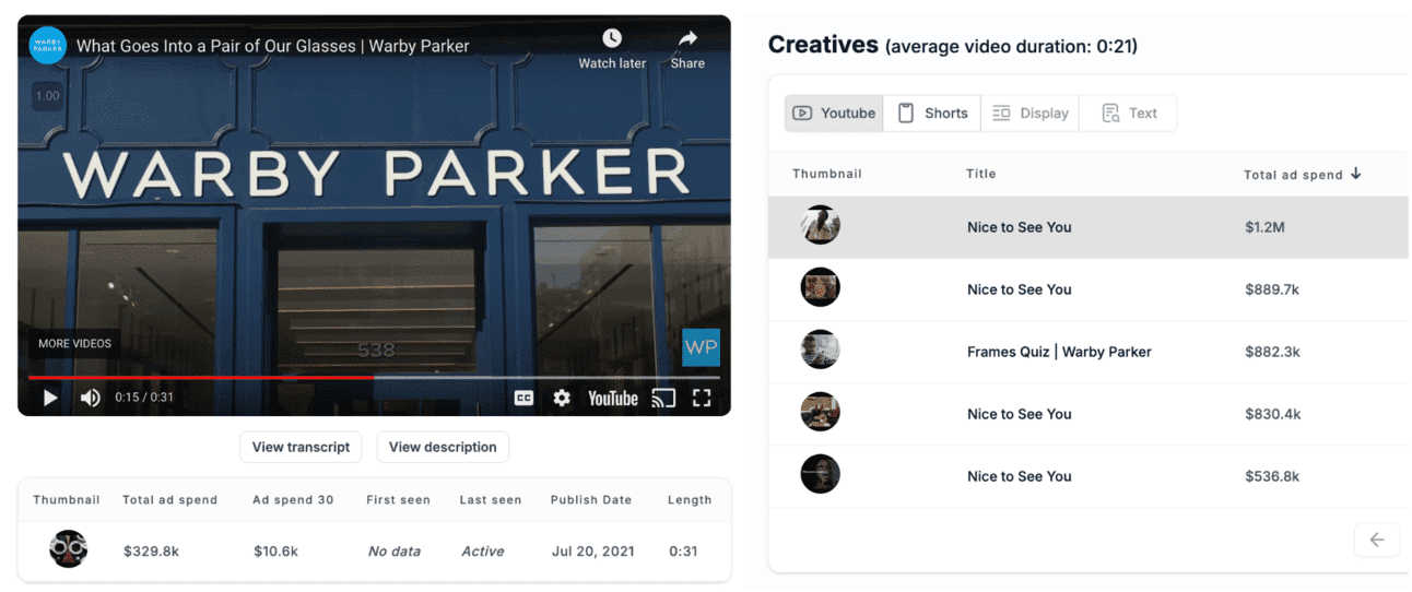 (See all of Warby Parker’s YouTube ads & landing pages here)