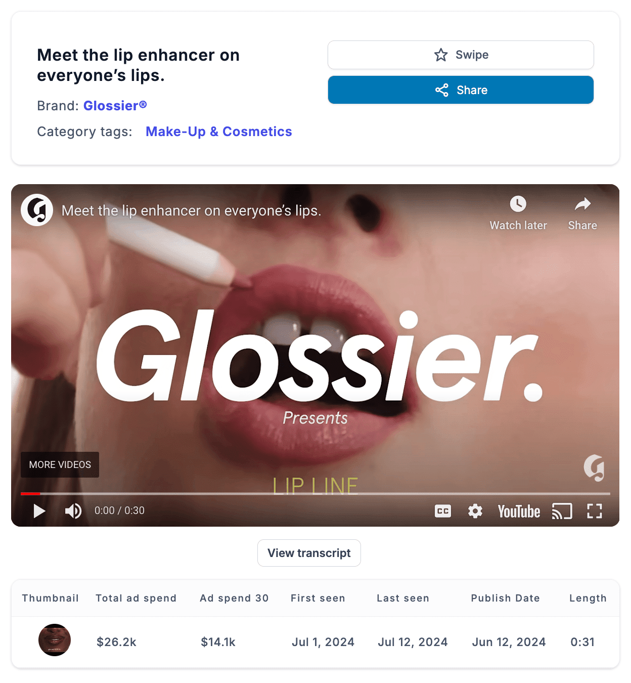 ( See all of Glossier’s YouTube ads & landing pages here inside VidTao.)