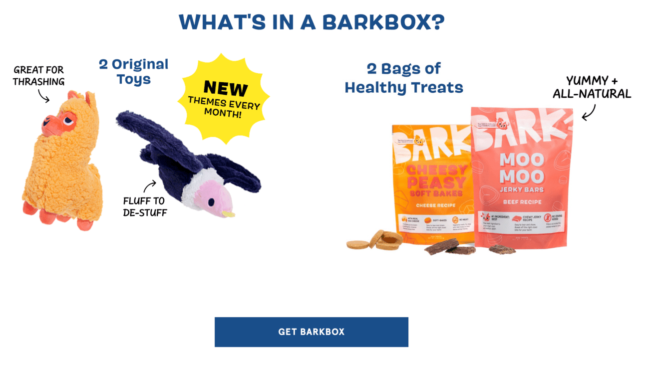 Subscription pet company Bark Box got started selling subscription boxes, which they still do, very well:
