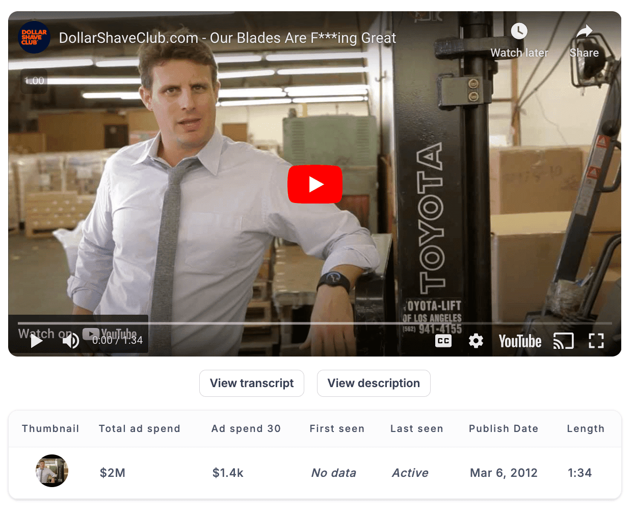 And not surprisingly, Dollar Shave Club doubled their testing volume (# of ads tested) since being purchased