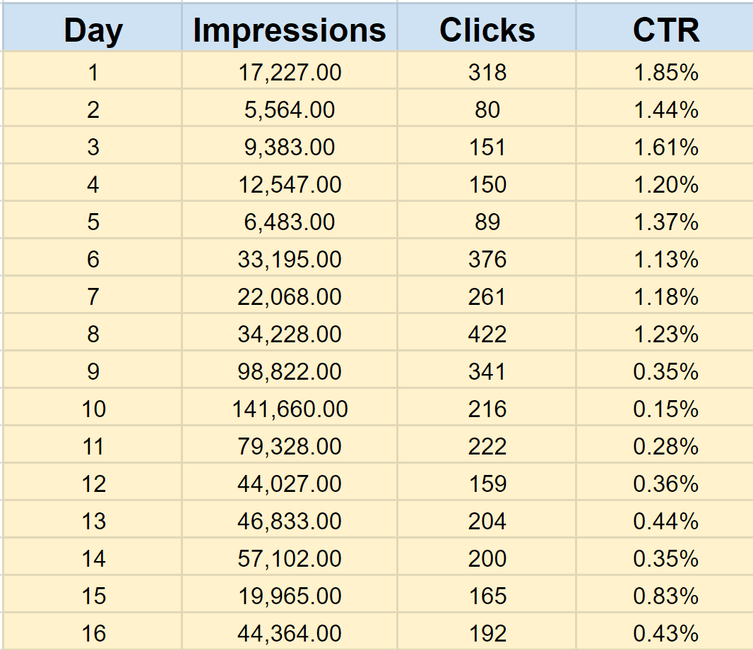 But, the truth is that I heard a bunch of new expressions without meaning to me, so, my logical brain had to translate these things into a language I understand. As CTR was the most frequently mentioned metric, at the beginning I paid the most attention to that.