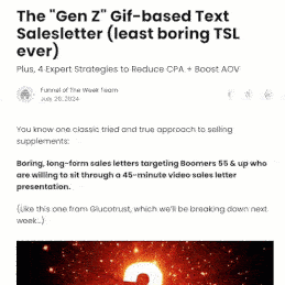 And last week they did a breakdown on a unique new “Gen Z” style text salespage that one brand is using to sell supplements, at scale:
