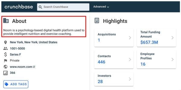 Crunchbase describes Noom as “a psychology-based digital health platform used to provide intelligent nutrition and exercise coaching”.