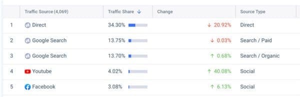 Let’s take a closer look at the traffic channel breakdown for Noom: