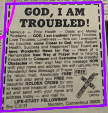 A big part of the Enquirer’s business model were these small direct response ads peppered throughout the magazine. Open up an Enquirer from this era to a random page and you’ll see something like this: