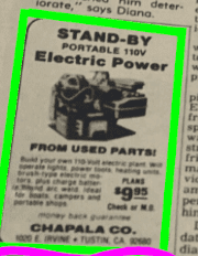 Back in the early 1980s you could buy these plans for building an at-home electric power generator from used parts, for just $9.95.