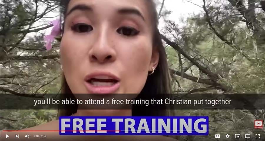 That's right: over 50% of this ad is simply the presenter re-stating the CTA (watch the free training on the next page)...