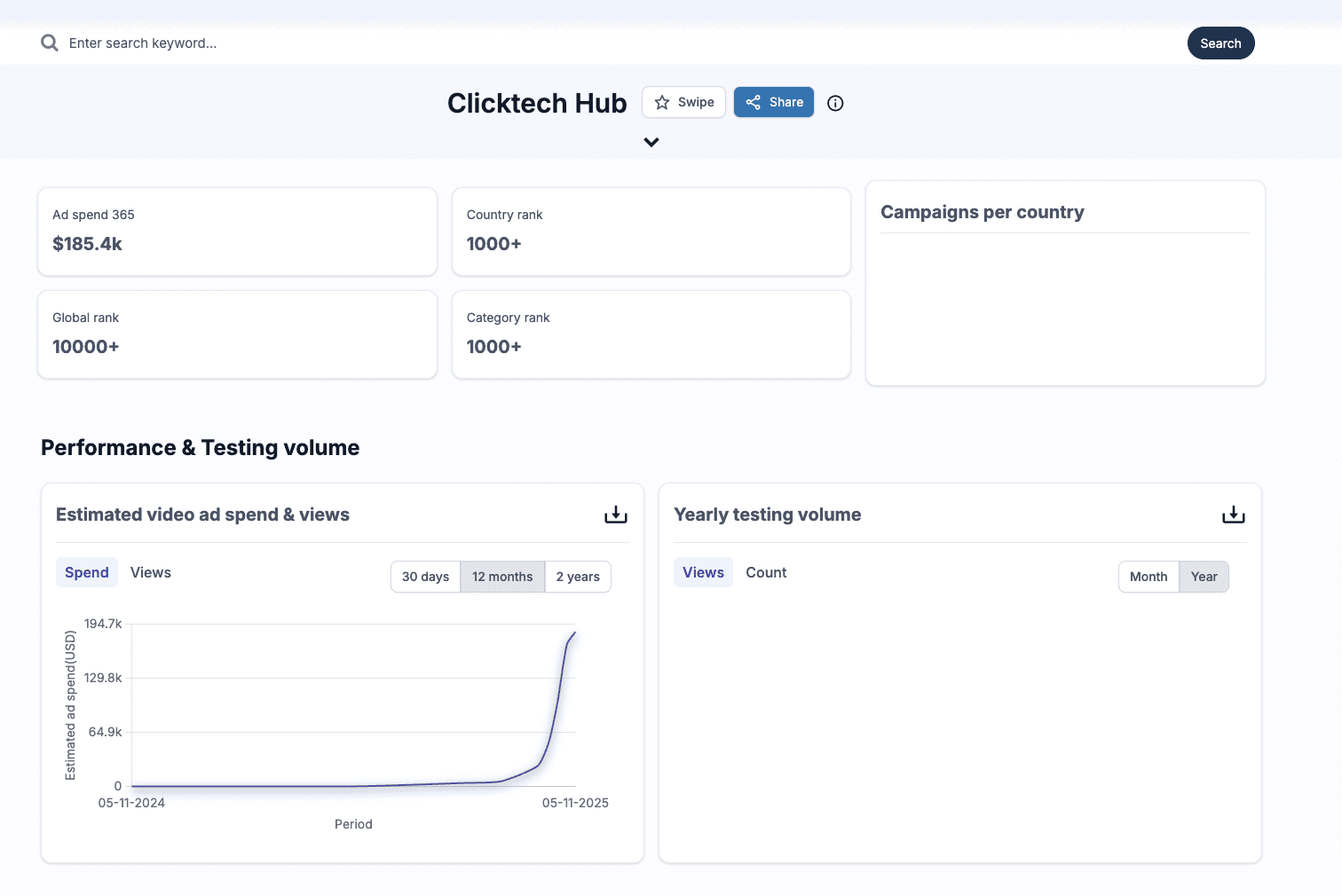 It’s useful for light creative research — but not built for spend tracking or performance analytics.