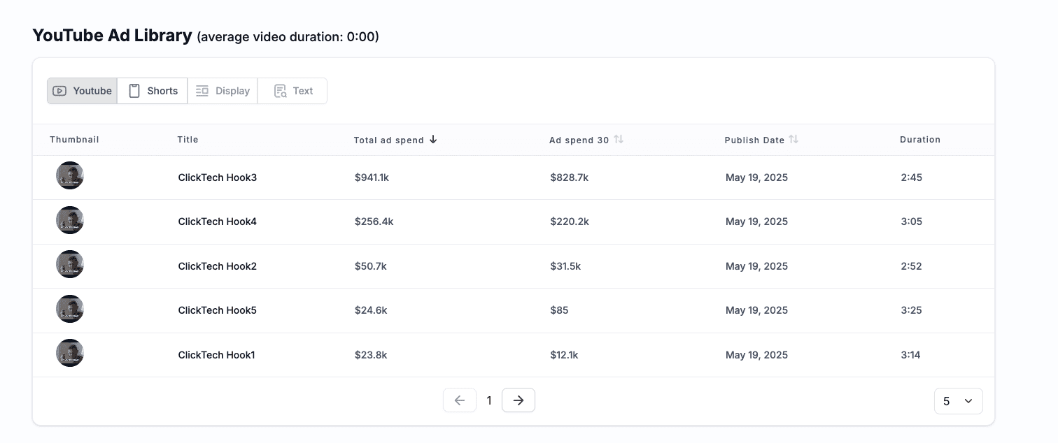 While other tools focus on affiliate traffic or Facebook ads, VidTao focuses purely on what’s scaling right now on YouTube — and shows you the spend, creative, and offer behind it.