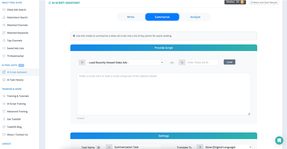 It also includes an AI Script Assistant for writing or analyzing video scripts: