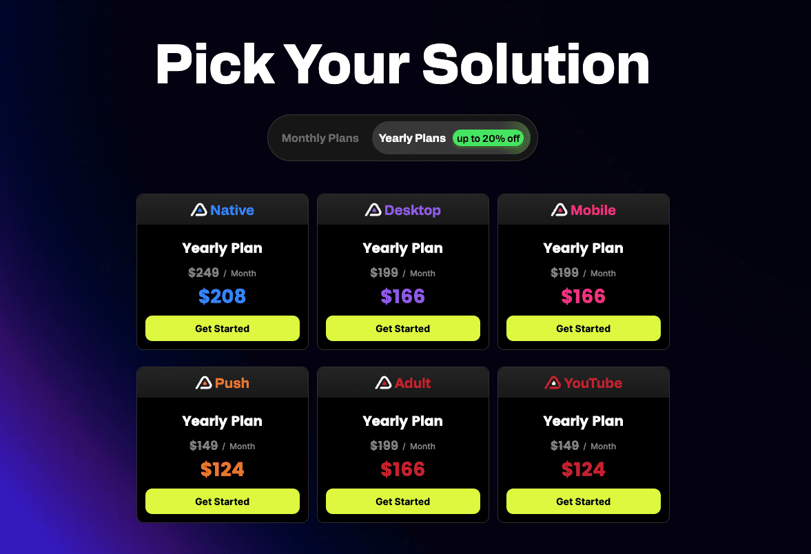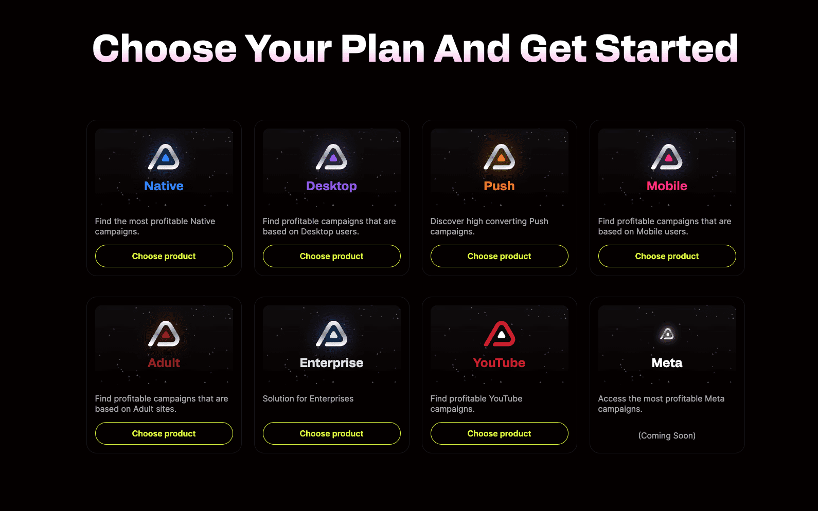 Each AdPlexity product (Native, Mobile, Desktop, Push, YouTube) is sold separately — so while the data quality is decent, the total cost adds up quickly if you need multi-channel access.