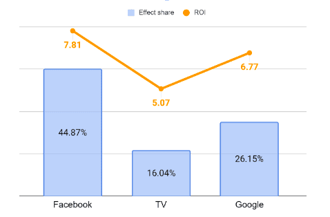 - If Facebook ROI is the highest, why then I shouldn’t invest all my money into Facebook ads? My model suggests investing any amount into Facebook ads and I’ll get more than 7 times higher in return.