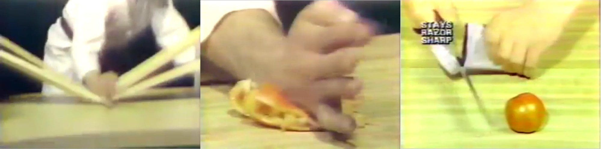 Here we are clearly shown the amazing benefits of the Ginsu knife, in a vivid demonstration: