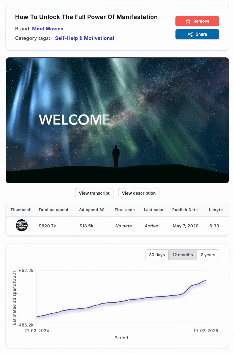 Manifestation ad by Mind Movies has estimated total ad spend of over $620k!